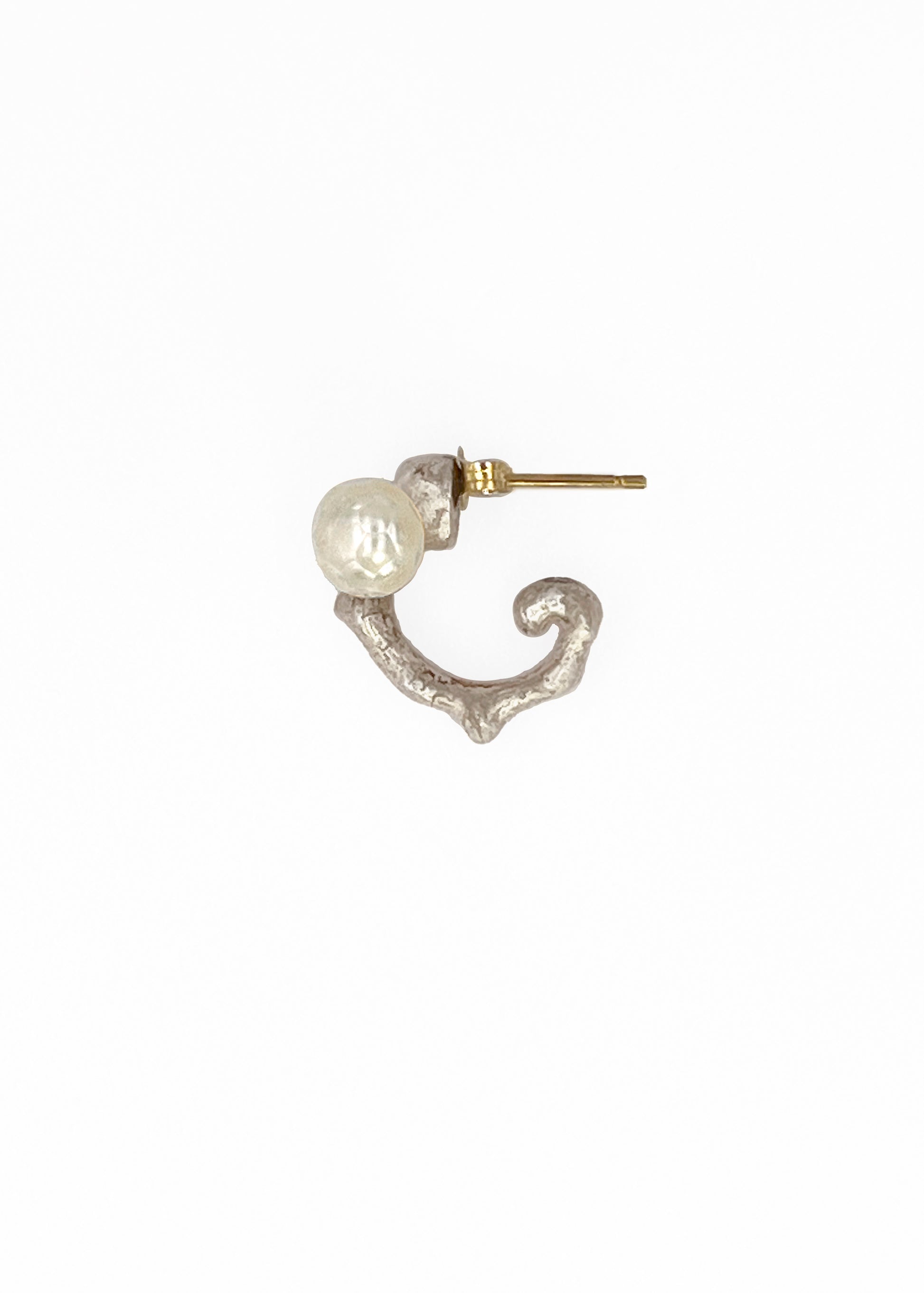 Crafted with recycled 925 sterling silver and recycled 9ct gold, and a faceted cut freshwater pearl, the Bone Earring No.1 with a faceted freshwater pearl embodies the concept of impermanence, transformation, and rebirth.