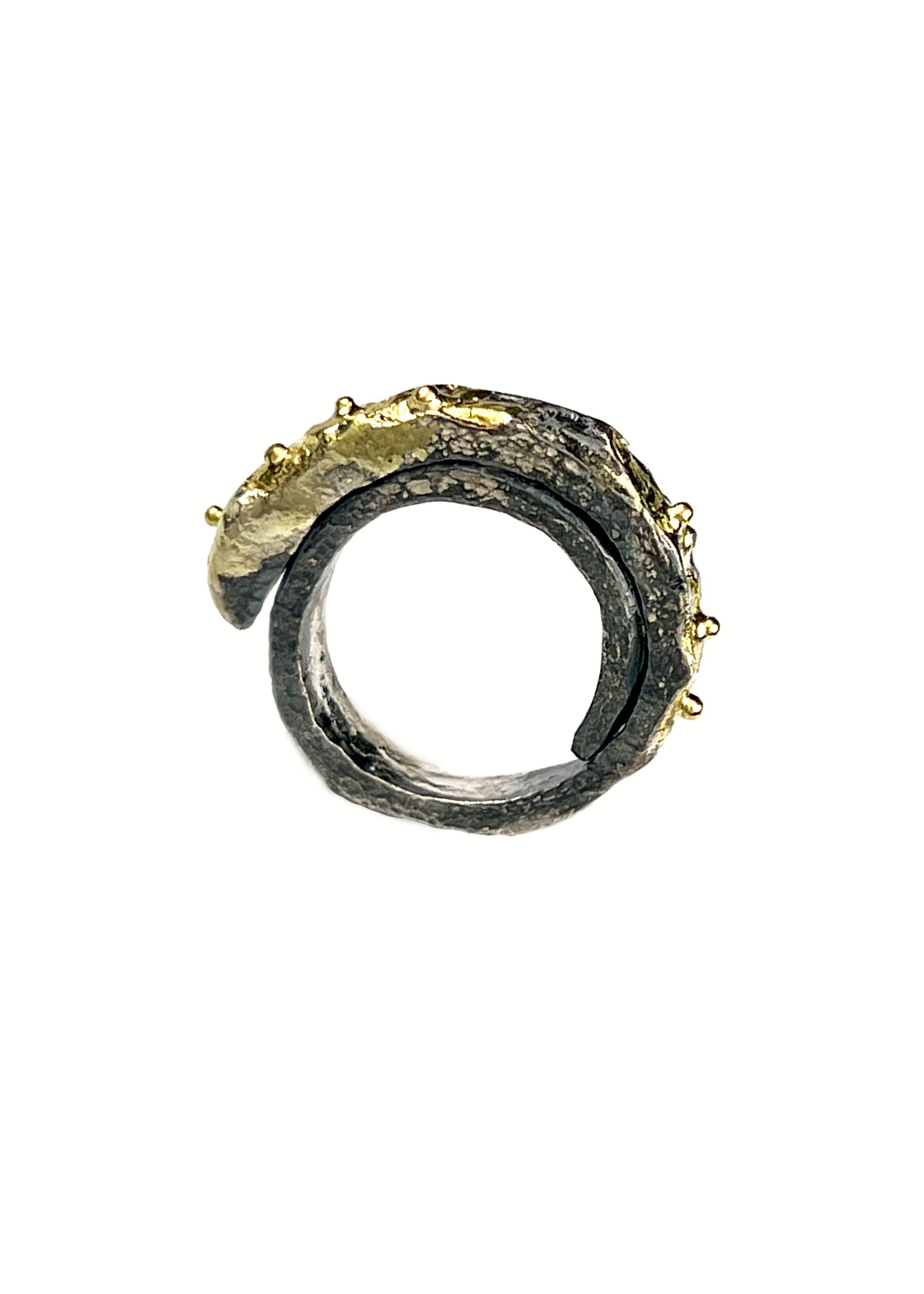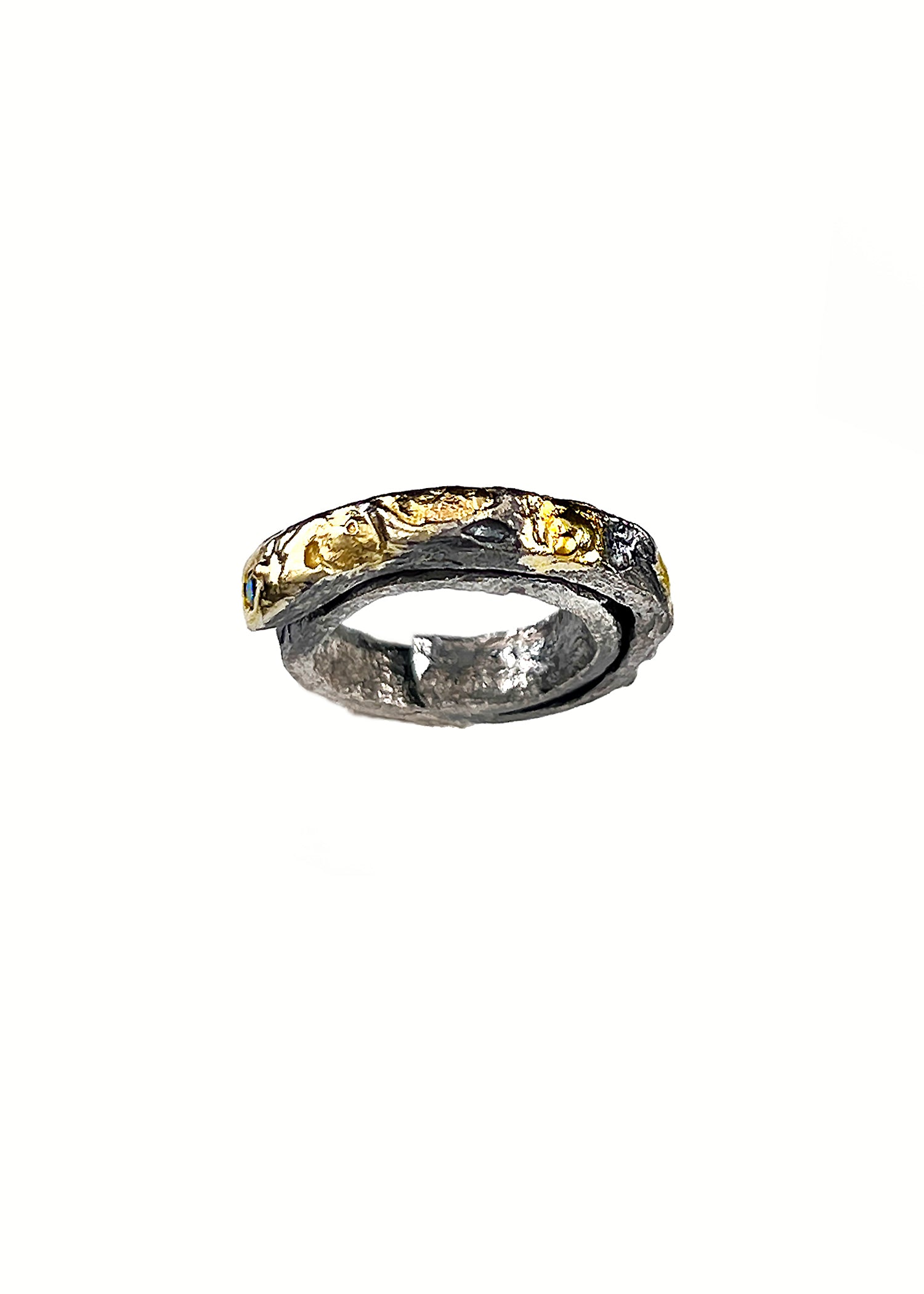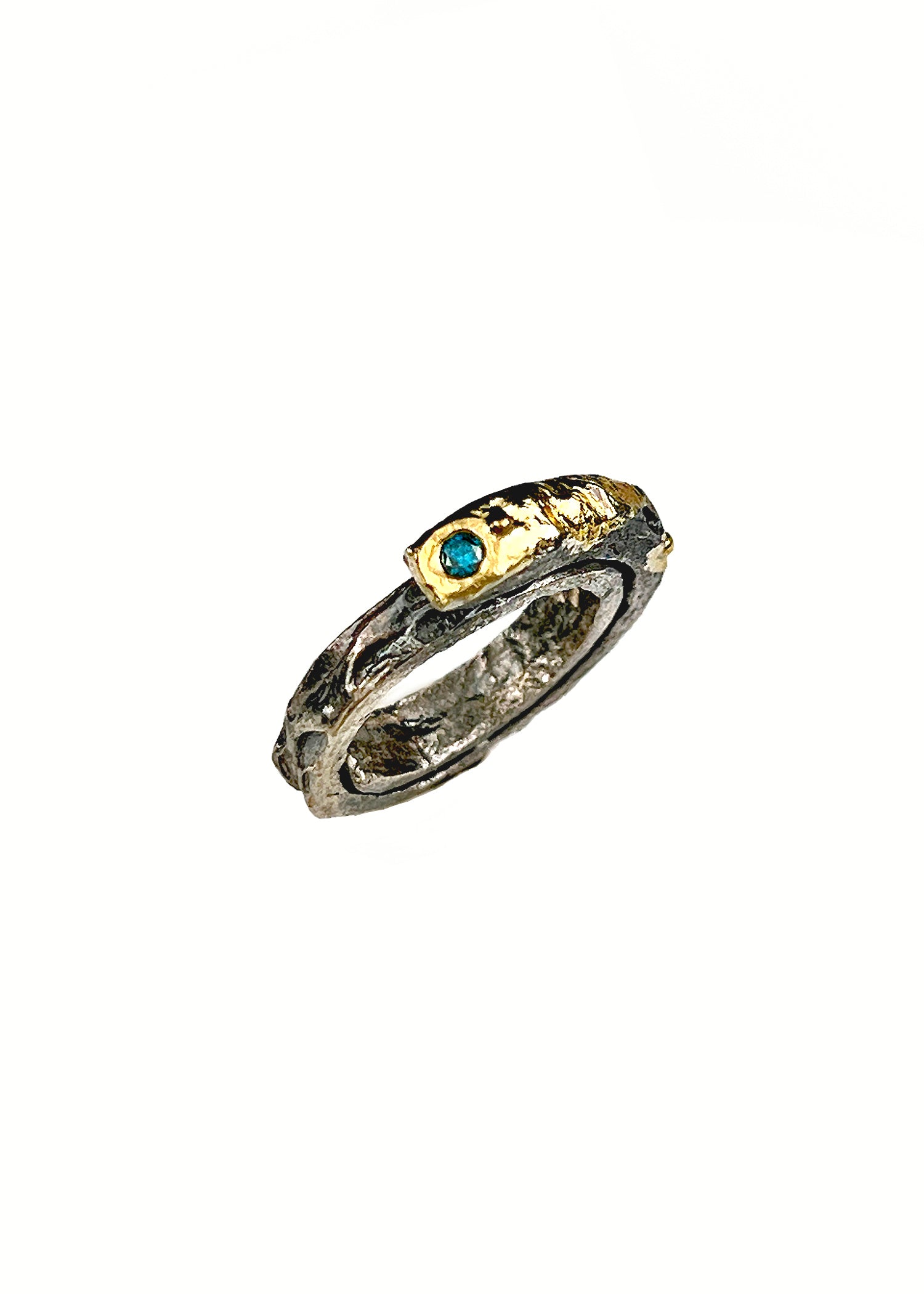 recycled sterling silver, recycled 18ct yellow gold embedded in the silver ring shank, 1 natural white diamond.